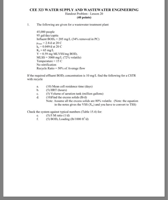 Solved The Following Are Given For A Wastewater Treatment Chegg Com